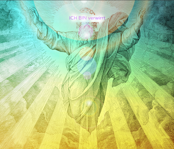 G: “Aux contraire, mein Lieber. Ich bin es nicht, der aufwachen muss. Ihr müsst aufwachen und endlich eure Hinterbacken zusammenkneifen. Das tief in der Menschheit verwurzelte Gefühl von Wertlosigkeit und Ohnmacht hat sie einen Gott basteln lassen, der mit Mir und meiner Schöpfung ziemlich wenig gemein hat. Versuche dich einmal in meine Lage zu versetzen: Da entwickelst du eine möglichst perfekte Schöpfung, mit der für den Zweck besten Umgebung und Atmosphäre, um eine Schöpferlehrlings Universität in die erlebbare Wirklichkeit umzusetzen. Aber was passiert?