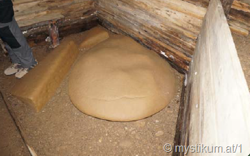 Die Herstellung, zu welchem Zweck und von wem, ist ebenso ein Rätsel, wie deren Materialien. Ähnlich wie bei der Pyramide (siehe Mystikum Oktoberausgabe), handelt es sich um ein künstlich hergestelltes Gesteinsgemisch, welches zum Teil bekanntes Quarzgestein enthält, wie auch unbekannte Materialien in sich trägt. UND: Es ist 4 mal härter, als der härteste Beton, den wir in unsere Zeitepoche herstellen können! Vor allem die Monolithen und Megalithen, die sich in den Gängen finden, bestehen aus diesem Gestein. Die Seitenwände sind so eine Art „ganz grober Beton“ in etwa, dies ist jedoch ohne Zement, und die verschiedenen Steine und Materialien halten einfach nur in der Verbindung ihrer selbst.