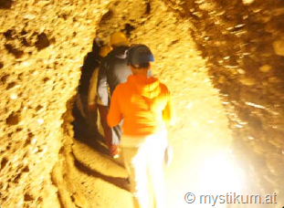 Einige der TeilnehmerInnen an der Reise, machten sich natürlich diesbezüglich schon Sorgen, und wollten zuerst gar nicht mit. Ein inneres Gefühl überzeugte sie dennoch, und sie waren dann letztendlich ebenso überrascht wie wir ALLE, als wir eben diese Weite spürten und keinen Funken von Einengung wahrgenommen haben. Im Inneren sind immer wieder sogenannte „Hallen“, also Kreuzungspunkte von einigen Gängen, an denen wir uns trafen und der Geschichte von Alvin lauschten, ebenso an ganz exponierten Stellen …