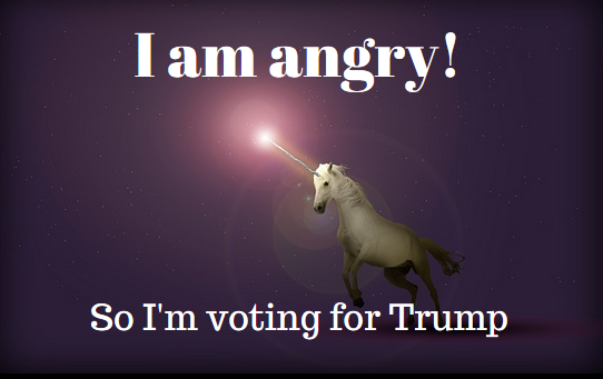 Es ist ein einfaches Rezept, was Donald Trump seinen Wählern verkauft: Es ist dasselbe Patentrezept, wie es in Österreich die FPÖ, in Deutschland die AFD, in Frankreich die Front National (FN)anbieten. Sie stimulieren und schüren die schon bestehende Unzufriedenheit der Bürger auf die herrschenden Parteien. Sie sprechen den Hass und die Wut aufs Establishment und damit breite Bevölkerungsschichten an, welche von der herrschenden Klasse die Schnauze voll haben. Es ist natürlich immer einfach, mit dem Finger auf die Probleme zu zeigen, darin sind wir alle gut. Aber wirkliche Lösungen oder intelligente Antworten auf die Probleme anzubieten, das kannst du von solchen Parteien nicht erwarten. Feindbilder plakatieren kann jeder ..