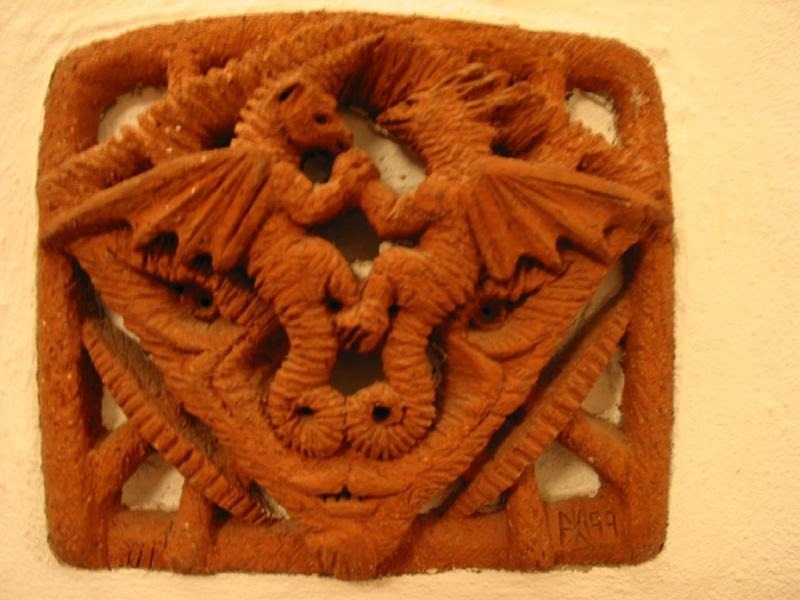 Diese Burg hatte es ziemlich IN sich, in einigen Räumen konnte man absolut dichte und eher negative Energien spüren. Vermutlich wurden dort irgendwelche bizarren Rituale abgehalten und gefoltert sicher ebenso. Brrr, wirklich finster .. da wurde viel Angst manifestiert. Und was da alles für schräge Bilder und Gipsarbeiten rumhingen, manche sicher nachgemacht, oder bearbeitet – aber das “geistige Kind” ist ziemlich deutlich ersichtlich. In einem der eher unguten Räume war eine Art “schwarzer Löwe” an der Wand, schade nur, daß ihn wohl keiner fotographierte – aber ein Bild gibts davon, das gibt aber den Originalen Eindruck wenig wieder.