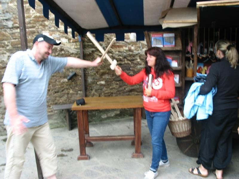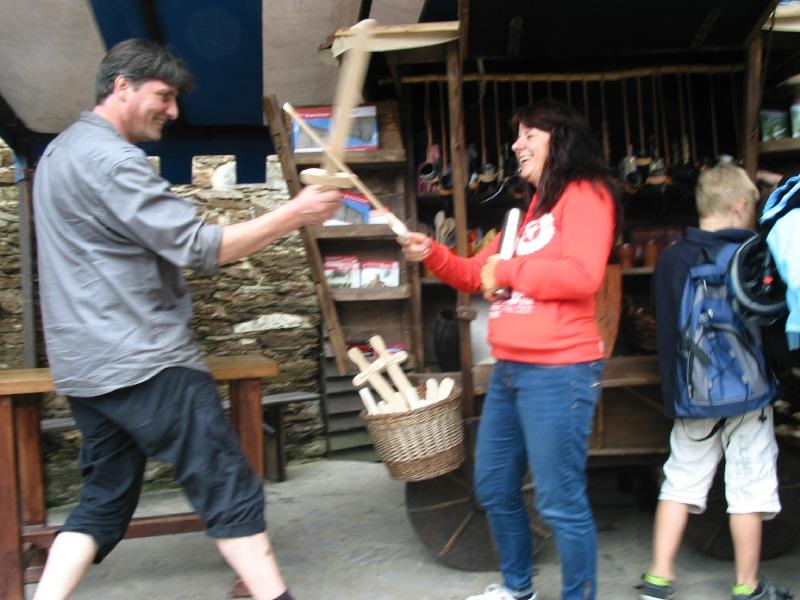 Neu in unserer Camp Runde, aber sofort von allen ins Herz geschlossen wurde Michaela. Hier mit mir und uns “Joesinski”, beim Schwertkampfblödeln auf dem Schlossgelände. Schon interessant, was man an inneren Eindrücken von Menschen hat und wie anders die lebende Person dann ist, wenn man sie sieht. Michaela hat ein wirklich lustiges, nettes und aufgewecktes Wesen. Man kann sie nur mögen ..